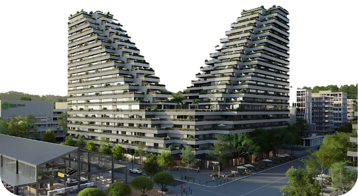 Com lagos, pistas de caminhada, petplace, estações de trabalho ao ar livre e mercado gastronômico